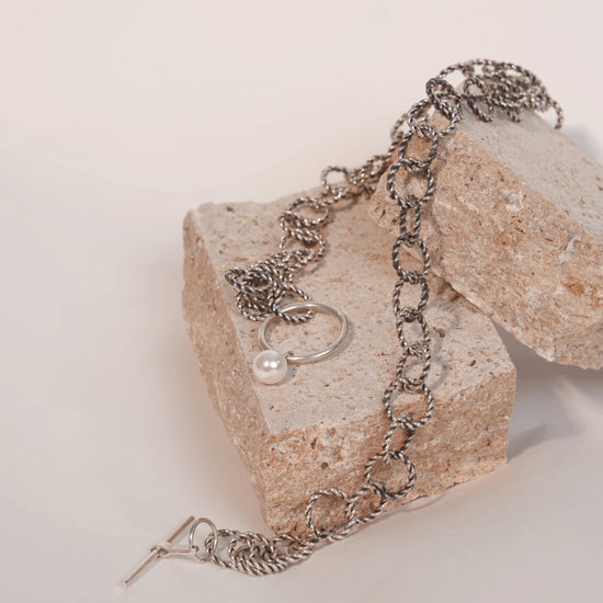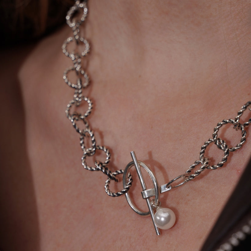 Серебряное ожерелье с жемчугом, символизирующее жизненные циклы. Длина - 48 см. Идеально подходит для повседневной носки и особых случаев.